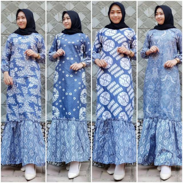 Jual Gamis Alika Indigo Zara Mozza Gamis Kondangan Longdress Wanita Duyung Dress Batik Pekalongan Murah Indonesia Shopee Indonesia